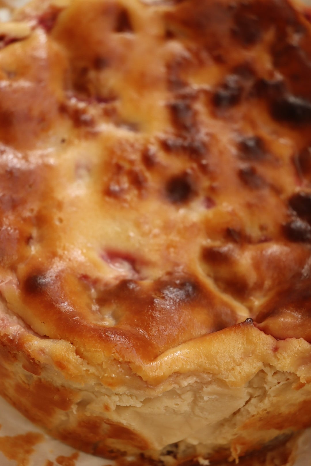 クリーミーな口どけのクリームチーズ生地に軽くコンポートしたいちごと、フレッシュないちごを加えて焼き上げました。